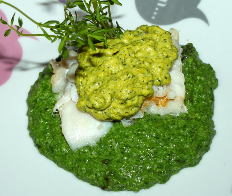 Encima del bacalao podemos poner un poco de salsa de espinacas ya que es más vistosa y de un verde más bonito e intenso.