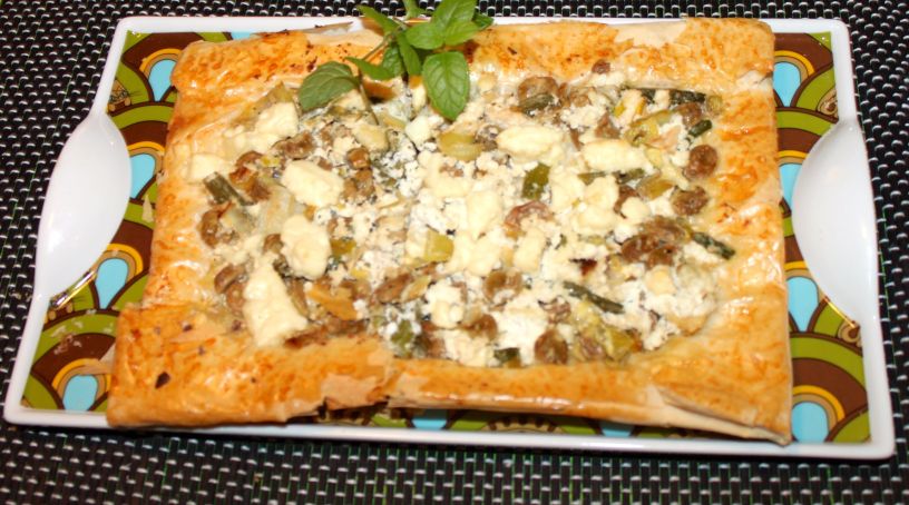 – 1 paquete de pasta filo, pasta brick o de hojaldre. Si usas pasta filo pon 3 o 4 capas, para la pasta brick una o dos menos y si usas hojaldre (fresco o congelado) solo tienes que extenderlo y echarle un poco de harina para darle forma y que no se pegue.