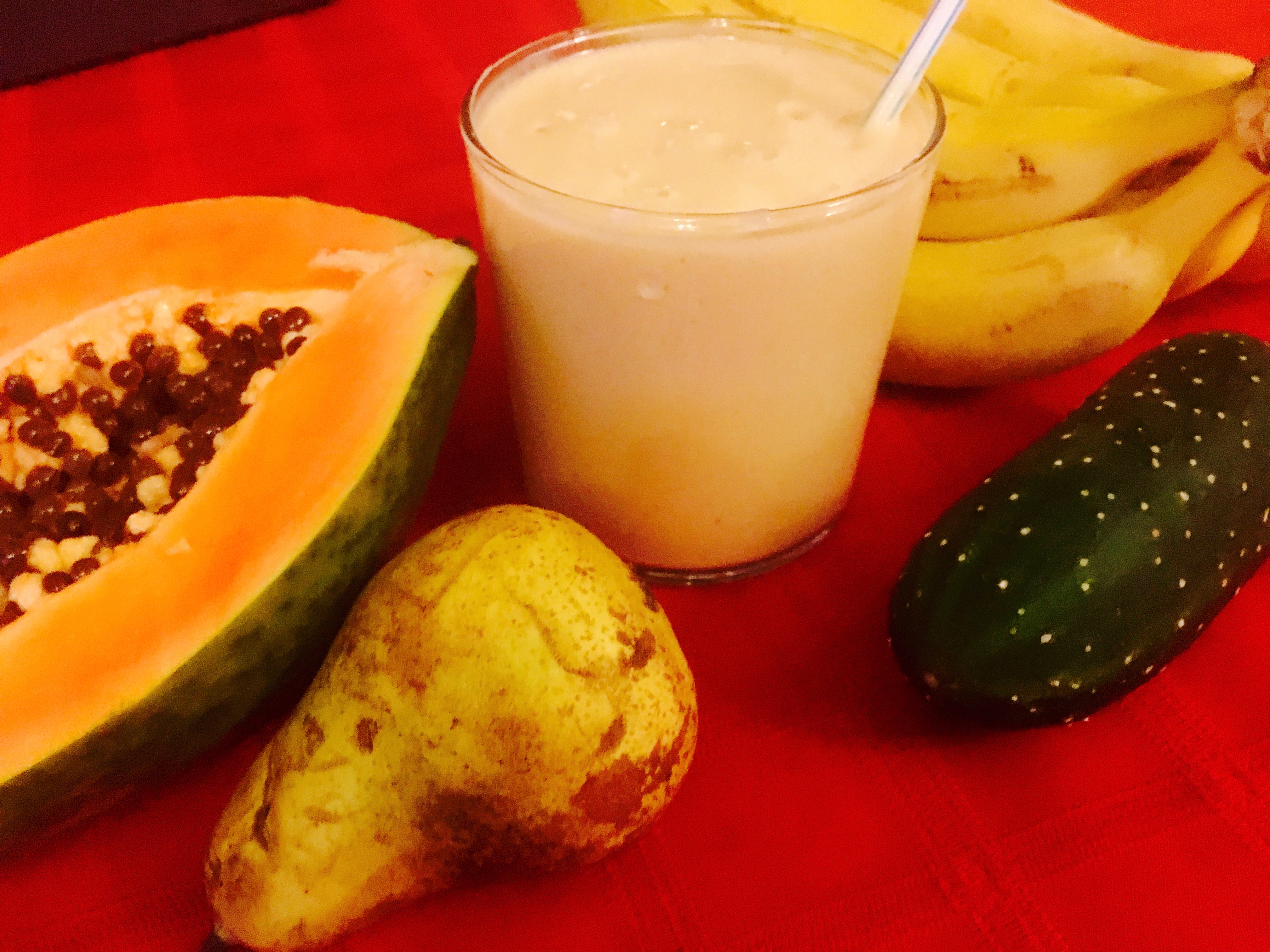 6. Batido MORIR DE AMOR: papaya, cítricos, pera, pepino y plátano