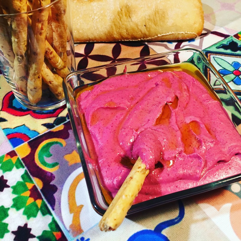 3. En un vaso de batidora o robot de cocina volcamos las alubias, la remolacha cocida, el ajo, nuestro tahini, sal, el comimo molido y un chorro de AOVE. Batimos hasta obtener una masa tersa no muy compacta ni muy líquida. Si nos queda muy líquida podemos añadir más alubias, si es al contrario y está muy pastosa podemos añadir agua o más remolacha. Rectificamos de sal y le damos nuestro gusto deseado en cuanto a ajo, comino… ¡ Y listo!