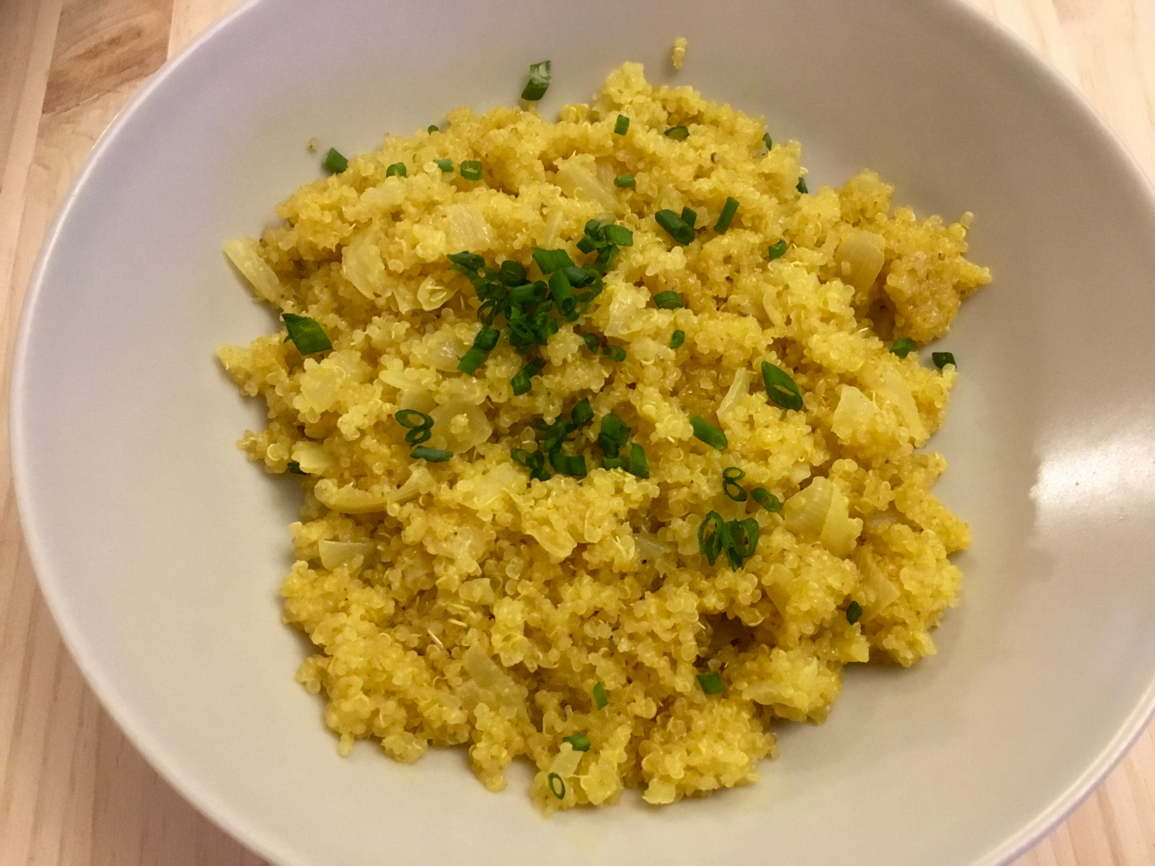 Como hacer un rico casi risotto de quinoa con cúrcuma. Quinoa con parmesano y especias.