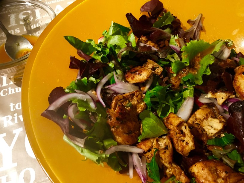 Este aderezo se asocia a la carne porque casa genial pero tiene multitud de posibilidades más desconocidas, como por ejemplo, la que os traigo hoy, una deliciosa ensalada con pollo marinado en chimichurri.