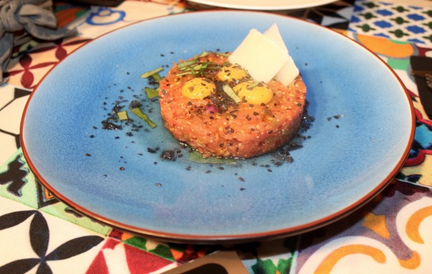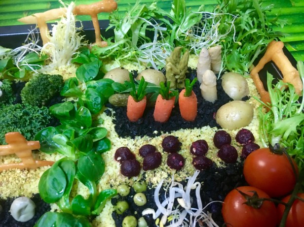 Verduras rellenas de quinoa y chorizo gratinadas con queso tierno de oveja a la pimienta rosa